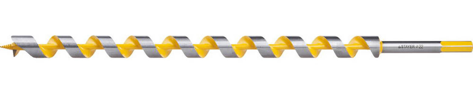 Сверло STAYER 29475-450-22, предназначено для сверления отверстий под деревянные нагели и стержневые дюбели. Инструмент STAYER это качество и надежность, проверенные временем! Производительное и точное сверление глубоких отверстий в различных древесных материалах. Специальная форма спирали обеспечивает оптимальный отвод стружки из зоны резания. Направляющее винтообразное лезвие позволяет сверлить без предварительного накернивания. Форма хвостовика в виде шестигранника осуществляет максимальную передачу режущего усилия.