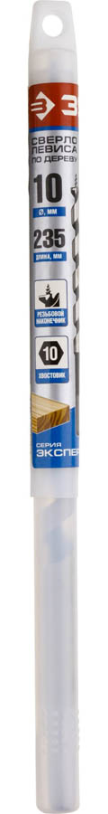 Сверло по дереву, спираль Левиса, HEX хвостовик, ЗУБР Эксперт 2948-235-10, d=10х235мм