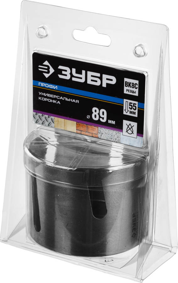 Универсальная коронка ЗУБР 29514-89, предназначена для решения разнообразных задач сверления при проведении строительных и ремонтных работ. Улучшенный твердый сплав повышает рабочий ресурс и стойкость режущих кромок. Фрезерованный корпус из высококачественной стали значительно сокращает возможные биения при работе. Специальный припой с содержанием серебра обеспечивает эффективное сопротивление ударным нагрузкам. Коронка подходит для сверления отверстий в легком бетоне, тонколистовом металле, кирпиче, керамической плитке, пластике, твердой и мягкой древесине.