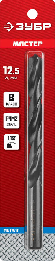 Сверло по металлу ЗУБР Мастер, быстрорежущая сталь, класс В, 29605-12.5, d=12,5 мм
