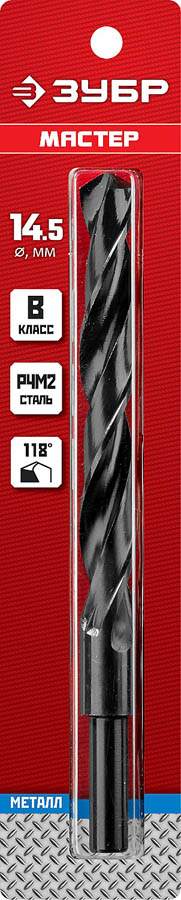Сверло по металлу ЗУБР Мастер, быстрорежущая сталь, класс В, хвостовик 10мм, 29605-14.5, d=14,5 мм