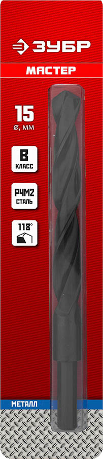 Сверло по металлу ЗУБР Мастер, быстрорежущая сталь, класс В, хвостовик 10мм, 29605-15, d=15,0 мм