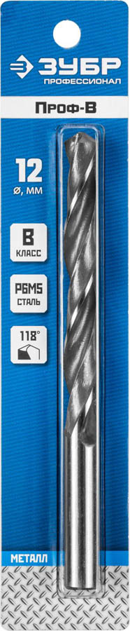Сверло по металлу Проф-В, класс В, Р6М5, ЗУБР Профессионал 29621-12, d=12,0 мм