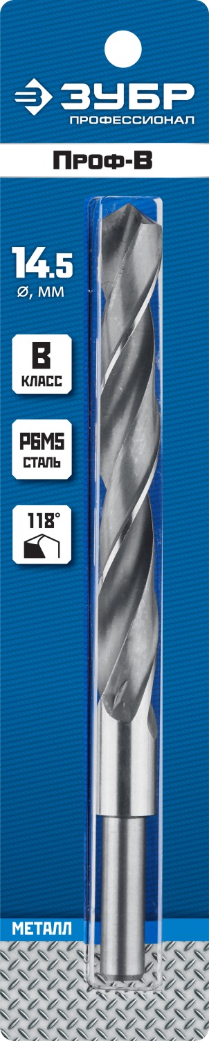 Сверло по металлу Проф-В, класс В, Р6М5, хвостовик 10мм, ЗУБР Профессионал 29621-14.5, d=14,5 мм