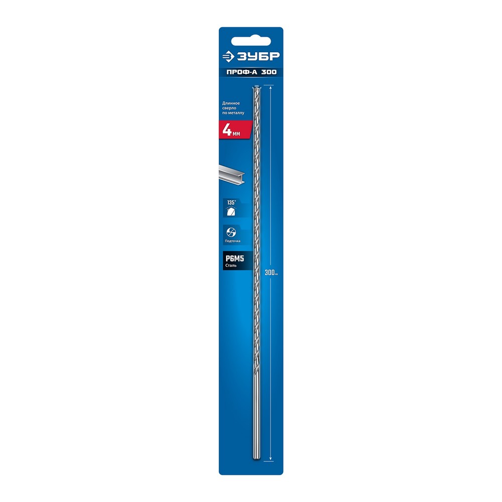 ЗУБР ПРОФ-А 300 (4х300 мм, Р6М5) длинное сверло по металлу, класс А (29624-4-300)