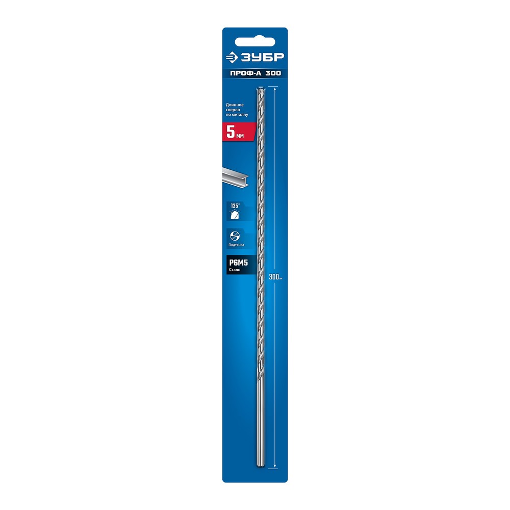 ЗУБР ПРОФ-А 300 (5х300 мм, Р6М5) длинное сверло по металлу, класс А (29624-5-300)