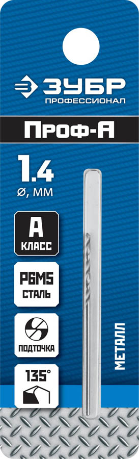 ЗУБР Ø 1.4 x 40 мм, класс А, Р6М5, сверло по металлу 29625-1.4 Профессионал
