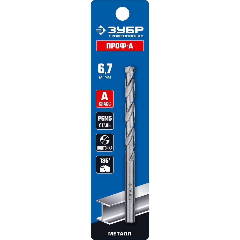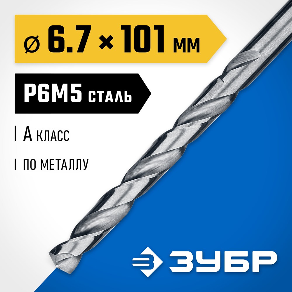 ЗУБР ПРОФ-А 6.7х101мм, Сверло по металлу, сталь Р6М5, класс А