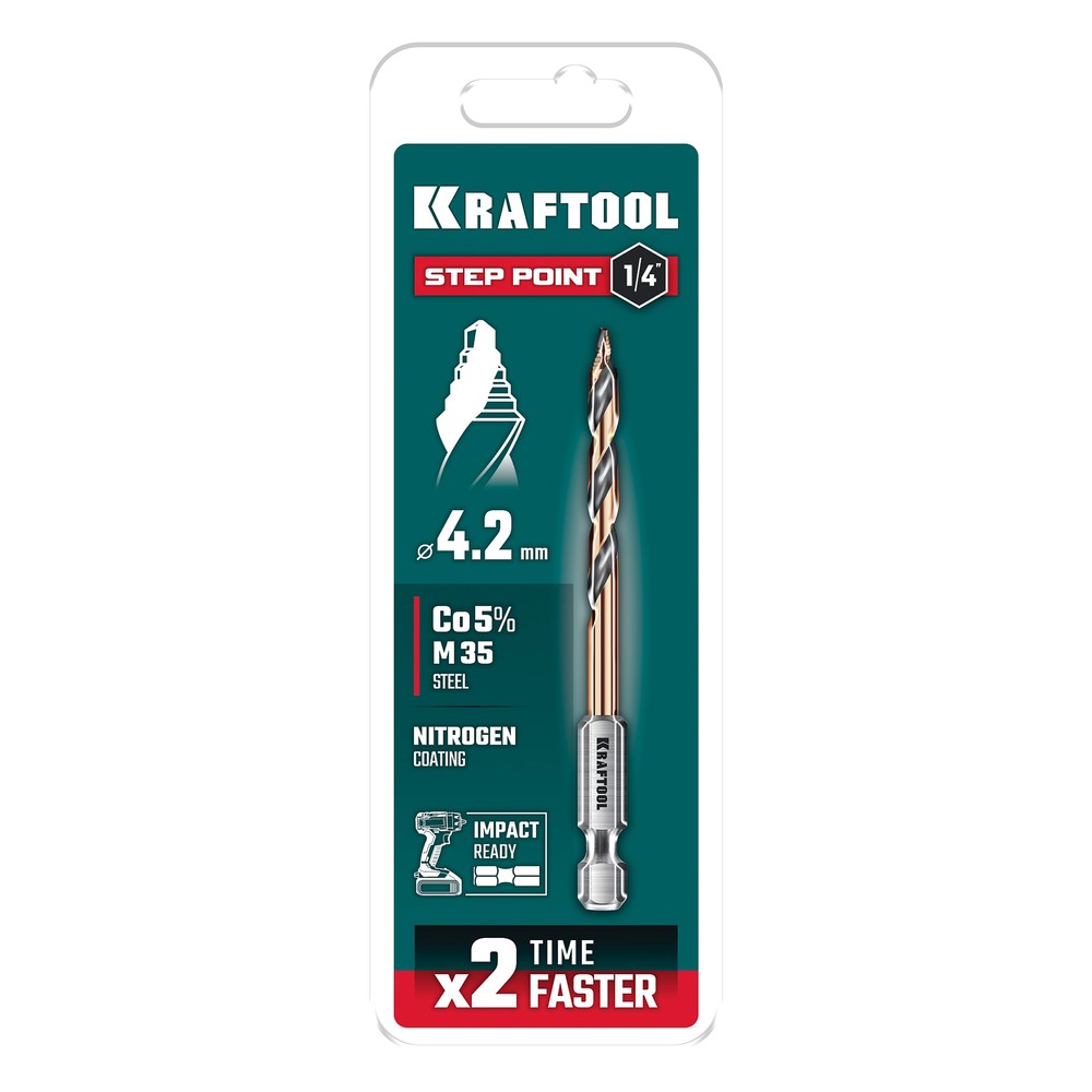 KRAFTOOL STEP POINT, d 4.2 х 83 мм, сверло по металлу для винтовёртов и шуруповертов IMPACT READY (29653-4.2)