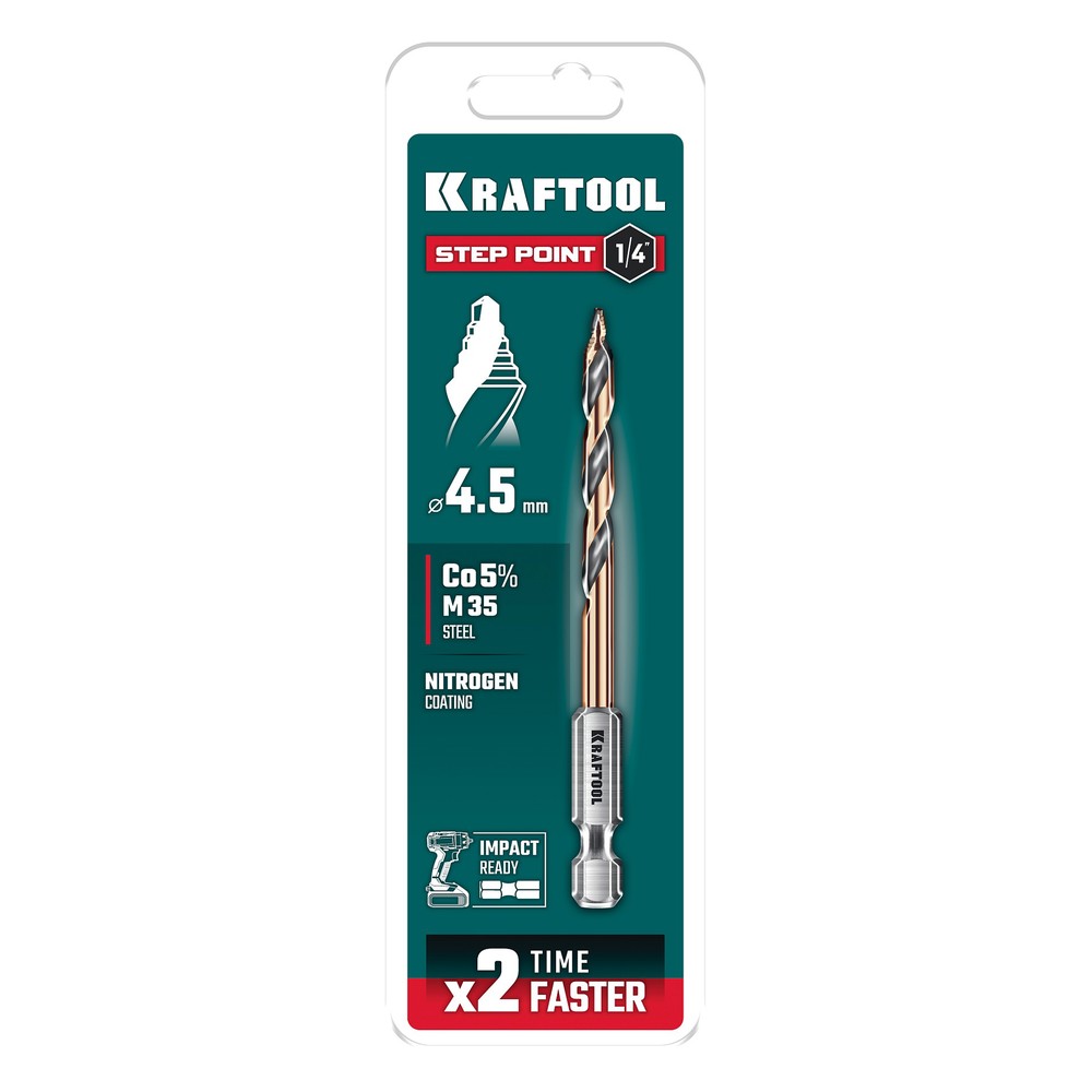 KRAFTOOL STEP POINT, d 4.5 х 87 мм, сверло по металлу для винтовёртов и шуруповертов IMPACT READY (29653-4.5)