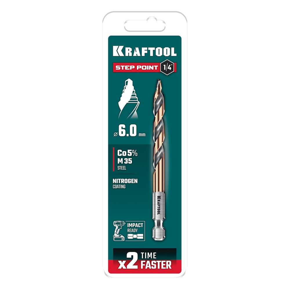 KRAFTOOL STEP POINT, d 6.0 х 98 мм, сверло по металлу для винтовёртов и шуруповертов IMPACT READY (29653-6)