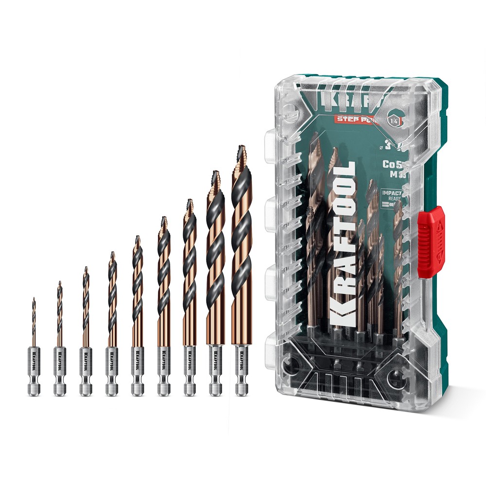 KRAFTOOL STEP POINT, 10 шт, набор сверл по металлу для винтовёртов и шуруповертов IMPACT READY (29653-H10)