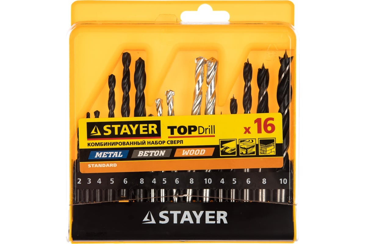 Набор комбинированных сверл STAYER Combi 16 предметов (29720-H16)