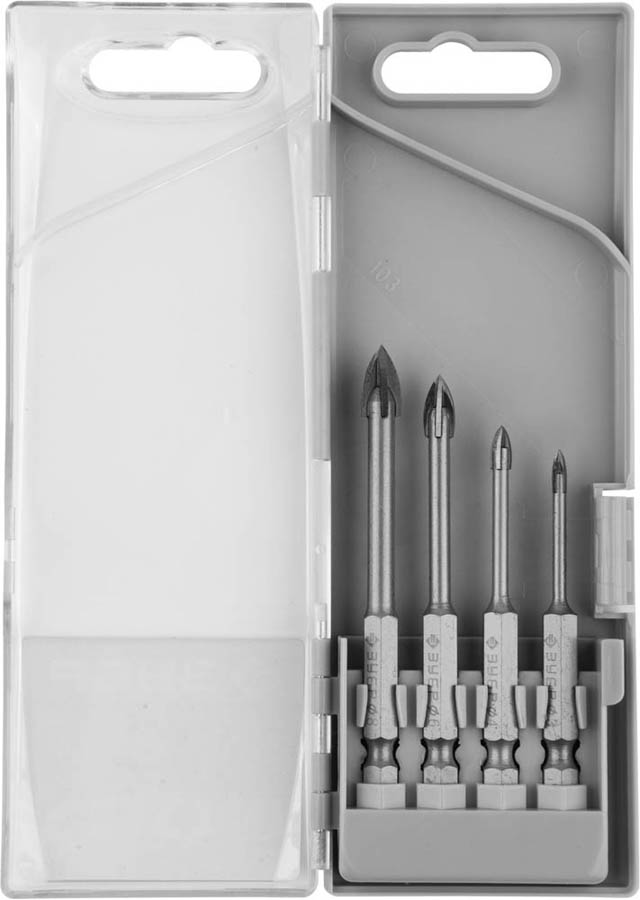 Набор сверл по кафелю, керамике, стеклу ЗУБР 29845-H4, предназначен для сверления керамической плитки, облицовочного камня, керамогранита.