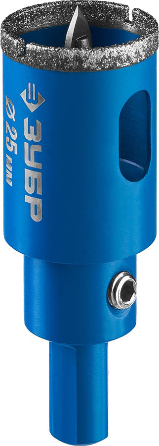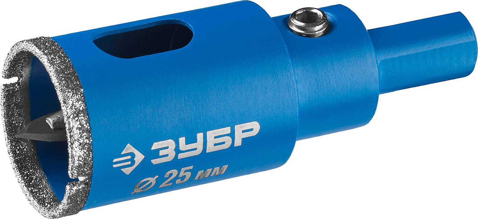 Коронка алмазная по кафелю и стеклу, d=25 мм, зерно Р 60, в сборе с центрирующим сверлом и имбусовым ключом, ЗУБР Профессионал 29850-25