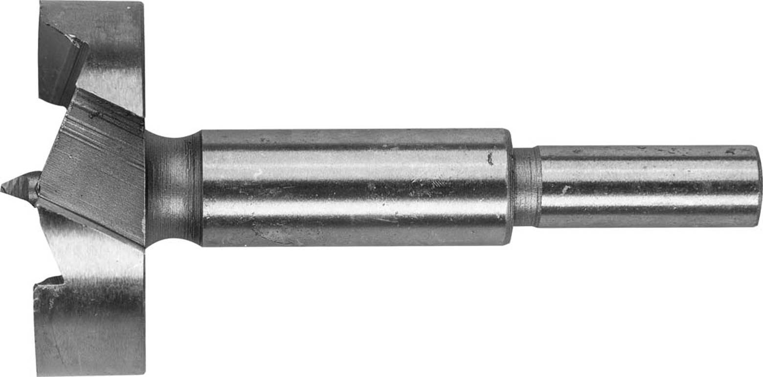 Сверло по дереву Форстнера ЗУБР 2993-45, применяется при установке мебельной фурнитуры, а также при сверлении глухих отверстий с точной геометрией и плоским дном. Благодаря боковым режущим кромкам и диаметральному подрезателю сверла обеспечивают высокую чистоту и качество реза. Наличие центрующего острия полностью исключает радиальное биение при работе. Из-за конструкции сверла в процессе работы не происходит автоматического выброса стружки. Необходимо извлекать древесную стружку из отверстия принудительно, останавливая процесс сверления.