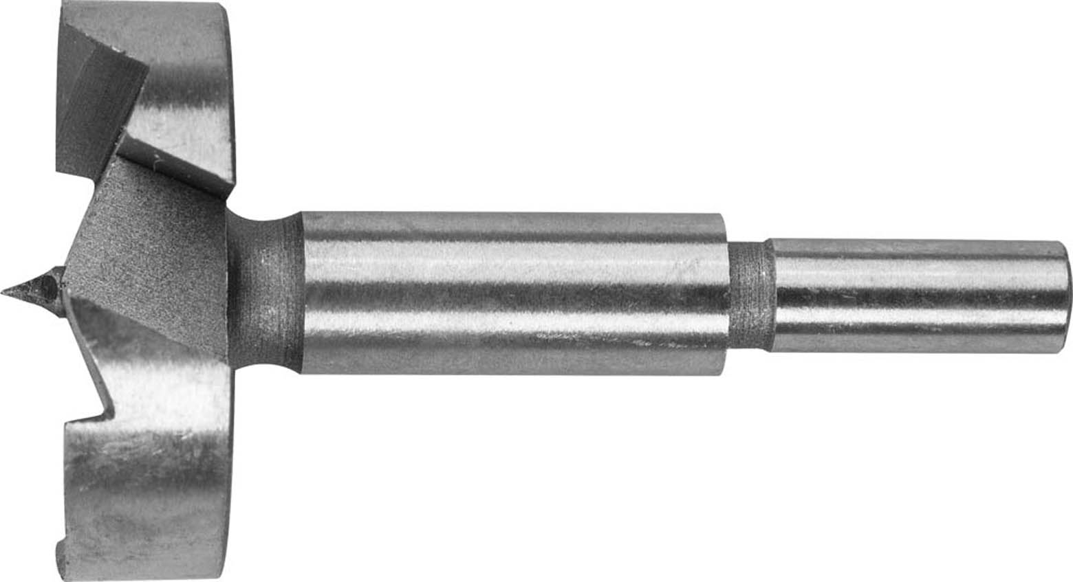 Сверло по дереву Форстнера ЗУБР 2993-50, применяется при установке мебельной фурнитуры, а также при сверлении глухих отверстий с точной геометрией и плоским дном. Благодаря боковым режущим кромкам и диаметральному подрезателю сверла обеспечивают высокую чистоту и качество реза. Наличие центрующего острия полностью исключает радиальное биение при работе. Из-за конструкции сверла в процессе работы не происходит автоматического выброса стружки. Необходимо извлекать древесную стружку из отверстия принудительно, останавливая процесс сверления.