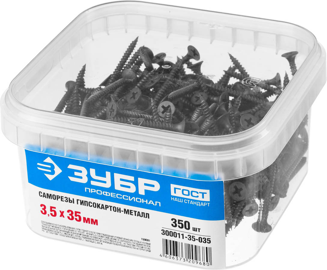 Саморезы СГМ гипсокартон-металл, 35 х 3.5 мм, 350 шт, фосфатированные, ЗУБР Профессионал (300011-35-035, )