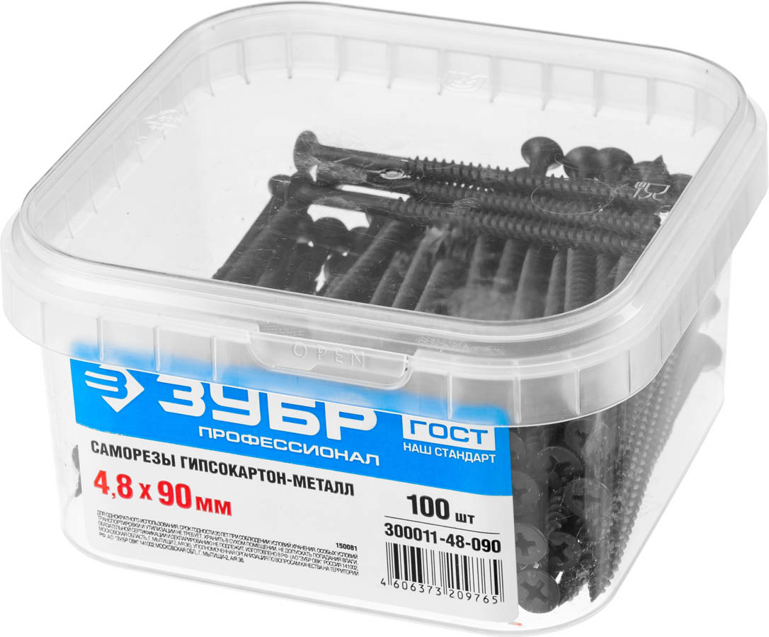 Саморезы СГМ гипсокартон-металл, 90 x 4.8 мм, 100 шт, фосфатированные, ЗУБР Профессионал