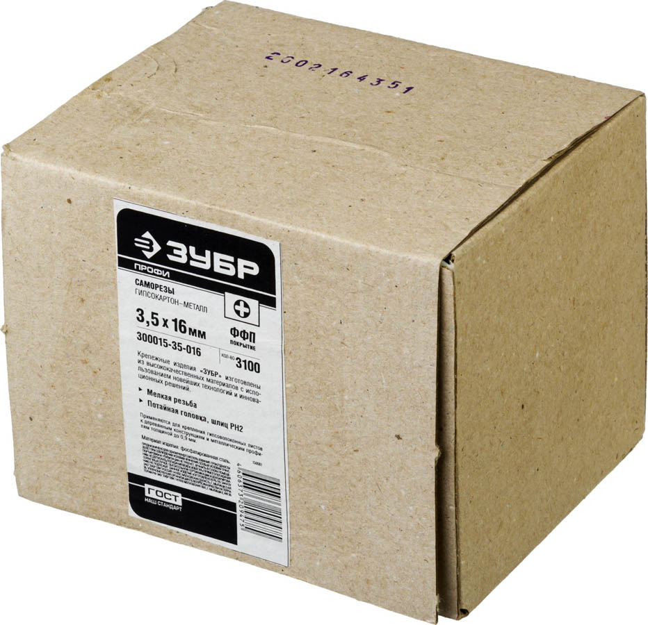Саморезы гипсокартон-металл ЗУБР 300015-35-016, применяются для крепления гипсокартона к деревянным конструкциям и металлическим профилям толщиной до 0.9 мм. Саморезы для гипсокартона изготовлены из высококачественной стали, прошедшей термическую обработку. В отличие от шурупов, саморезы не требуют предварительного сверления в скрепляемых материалах. Находят широкое применение при выполнении бытового ремонта, сборке и установке различных конструкций. Мелкий шаг резьбы оптимален для крепления гипсокартона к металлическому профилю и твердым породам дерева. Фосфатированное покрытие надежно защищает от коррозии.