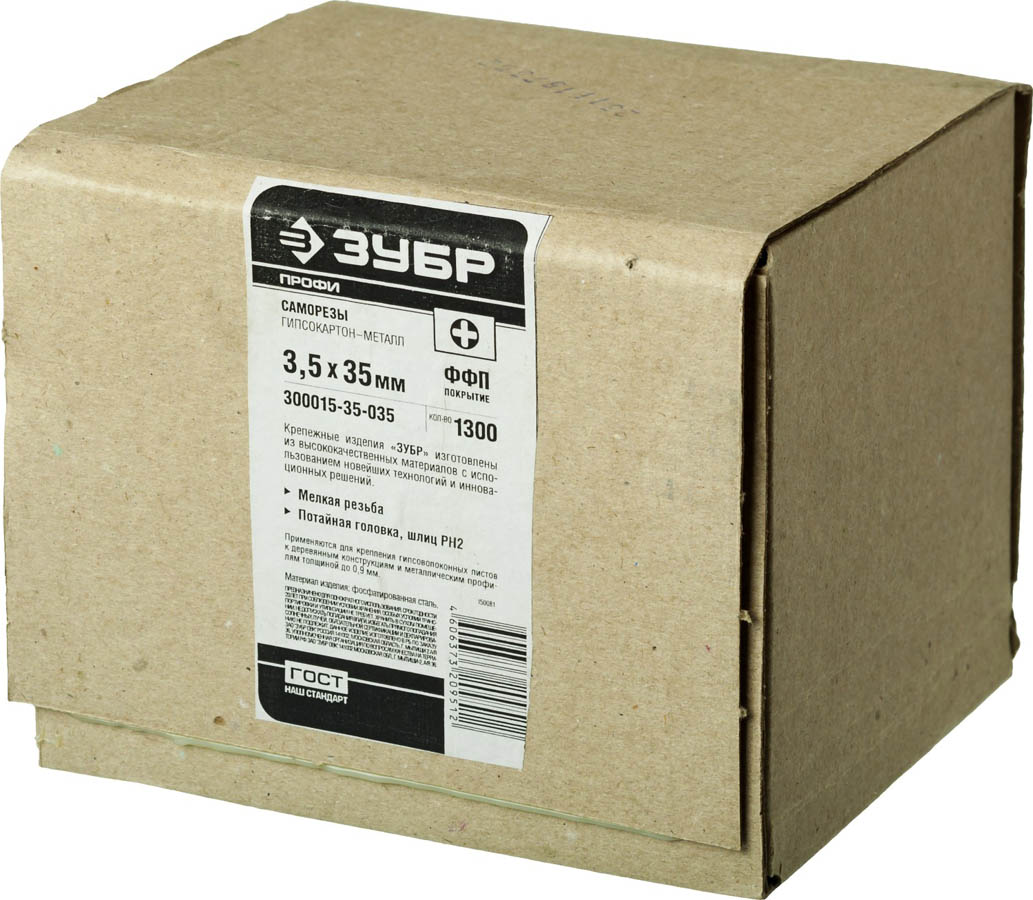 Саморезы СГМ гипсокартон-металл, 35 х 3.5 мм, 1 300 шт, фосфатированные, ЗУБР Профессионал