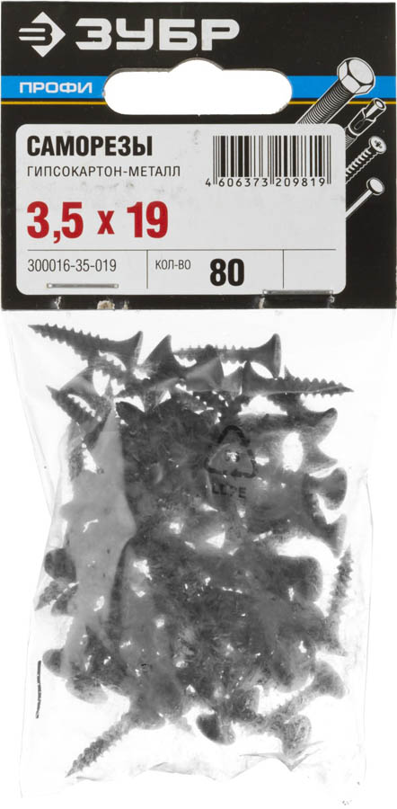Саморезы гипсокартон-металл ЗУБР 300016-35-019, применяются для крепления гипсокартона к деревянным конструкциям и металлическим профилям толщиной до 0.9 мм. Саморезы для гипсокартона изготовлены из высококачественной стали, прошедшей термическую обработку. В отличие от шурупов, саморезы не требуют предварительного сверления в скрепляемых материалах. Находят широкое применение при выполнении бытового ремонта, сборке и установке различных конструкций. Мелкий шаг резьбы оптимален для крепления гипсокартона к металлическому профилю и твердым породам дерева. Фосфатированное покрытие надежно защищает от коррозии.