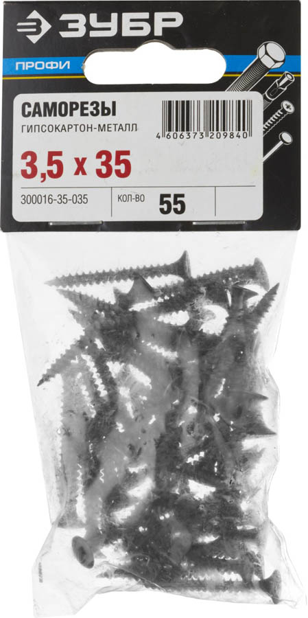 Саморезы СГМ гипсокартон-металл, 35 х 3.5 мм, 55 шт, фосфатированные, ЗУБР Профессионал