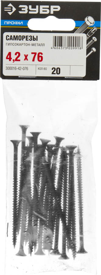 Саморезы СГМ гипсокартон-металл, 76 х 4.2 мм, 20 шт, фосфатированные, ЗУБР Профессионал