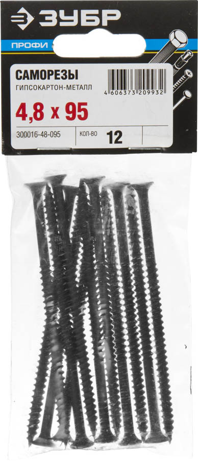 Саморезы СГМ гипсокартон-металл, 95 x 4.8 мм, 12 шт, фосфатированные, ЗУБР Профессионал