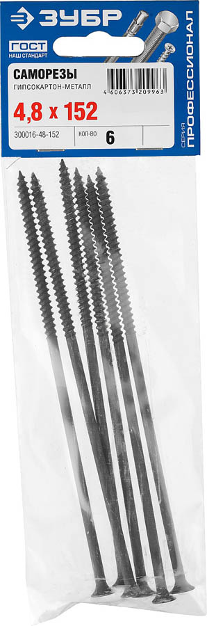 ЗУБР 152х4.8 мм, 6 шт., саморезы гипсокартон-металл 300016-48-152
