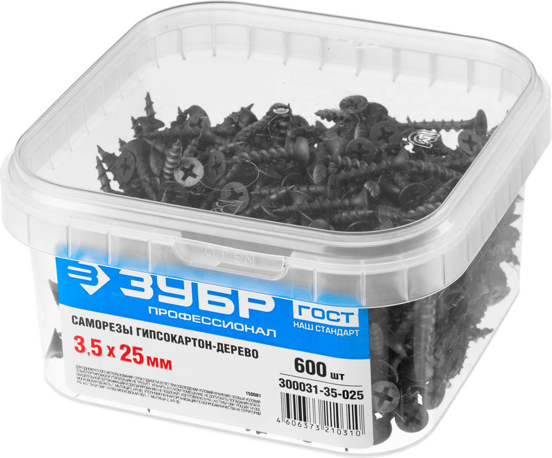 Саморезы СГД гипсокартон-дерево, 25 х 3.5 мм, 600 шт, фосфатированные, ЗУБР Профессионал (300031-35-025, )
