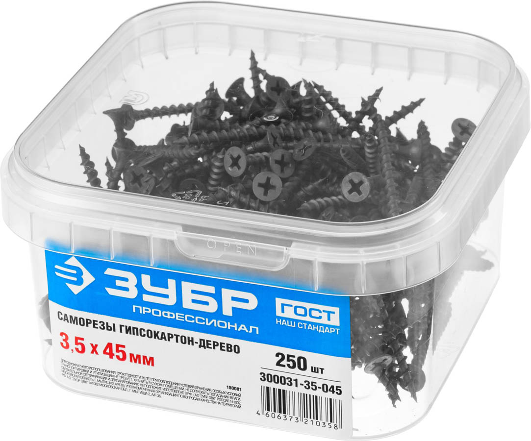 Саморезы СГД гипсокартон-дерево, 45 х 3.5 мм, 250 шт, фосфатированные, ЗУБР Профессионал (300031-35-045, )