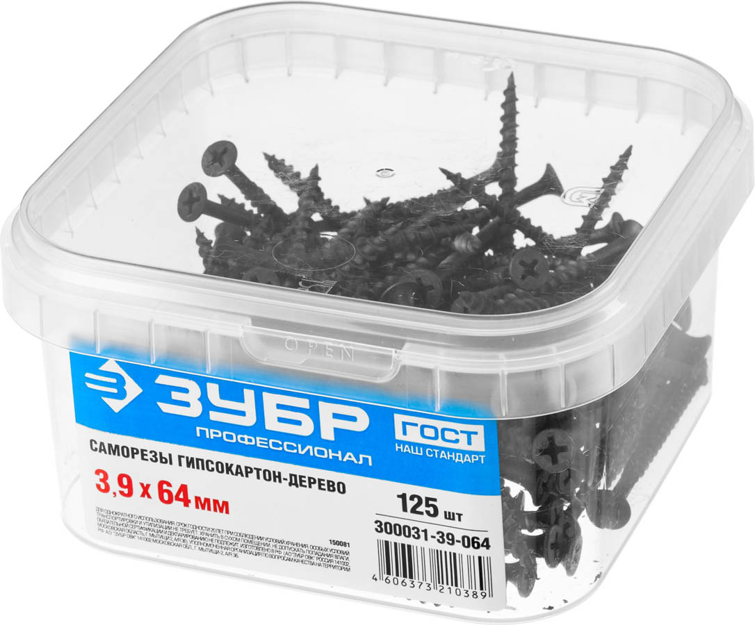 Саморезы СГД гипсокартон-дерево, 64 х 3.9 мм, 125 шт, фосфатированные, ЗУБР Профессионал