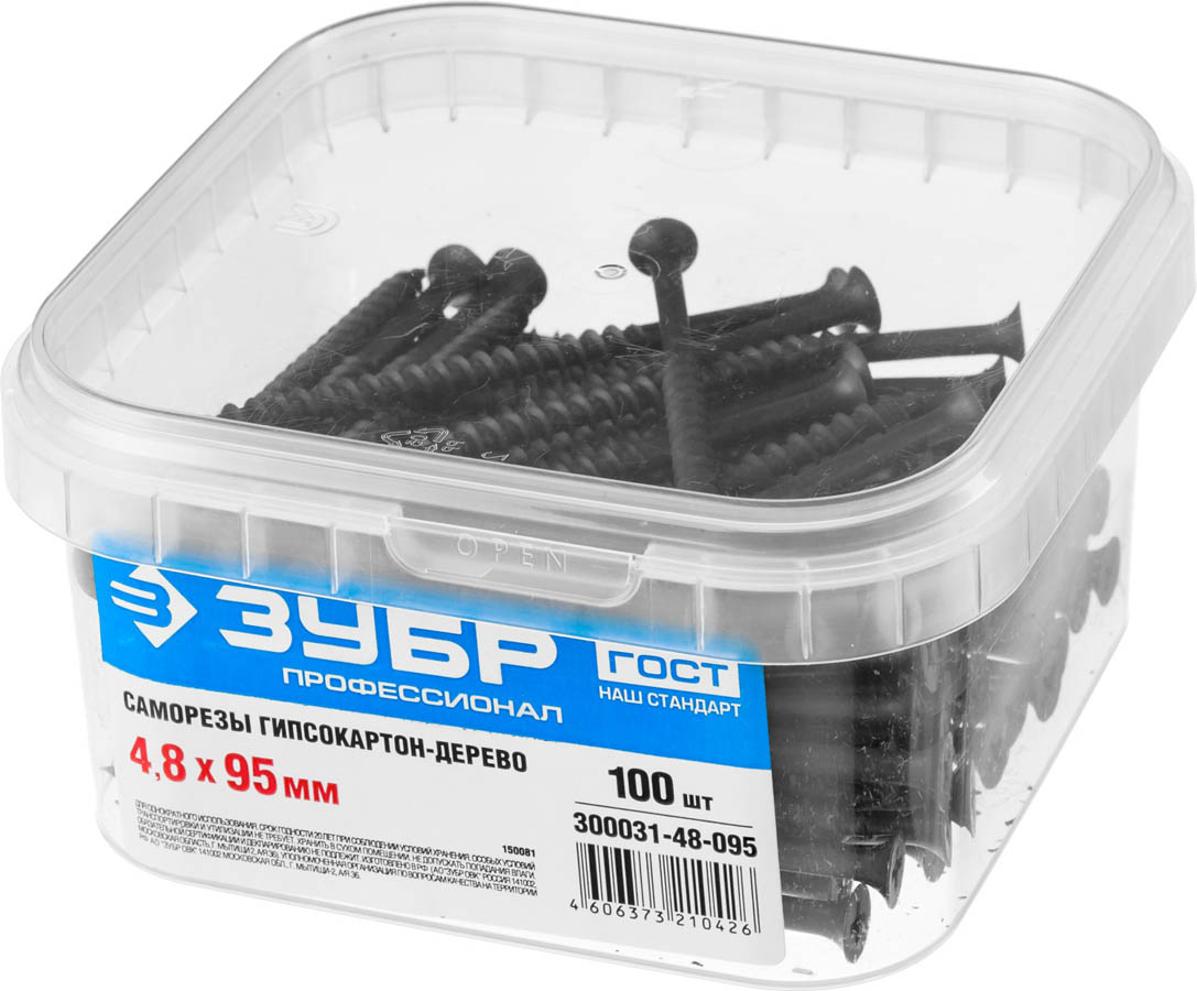 Саморезы СГД гипсокартон-дерево, 95 x 4.8 мм, 100 шт, фосфатированные, ЗУБР Профессионал