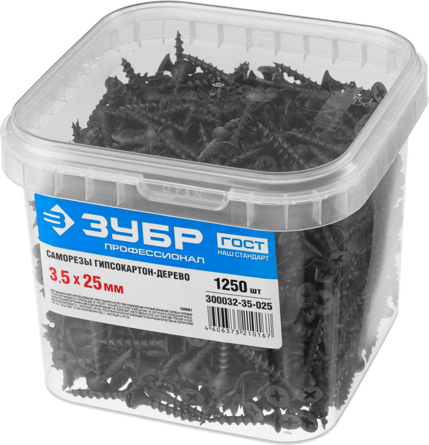 Саморезы СГД гипсокартон-дерево, 25 х 3.5 мм, 1 250 шт, фосфатированные, ЗУБР Профессионал (300032-35-025, )