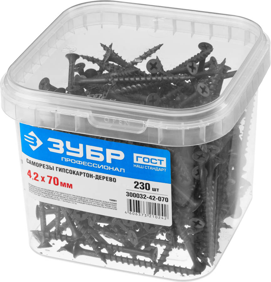 Саморезы СГД гипсокартон-дерево, 70 x 4.2 мм, 230 шт, фосфатированные, ЗУБР Профессионал