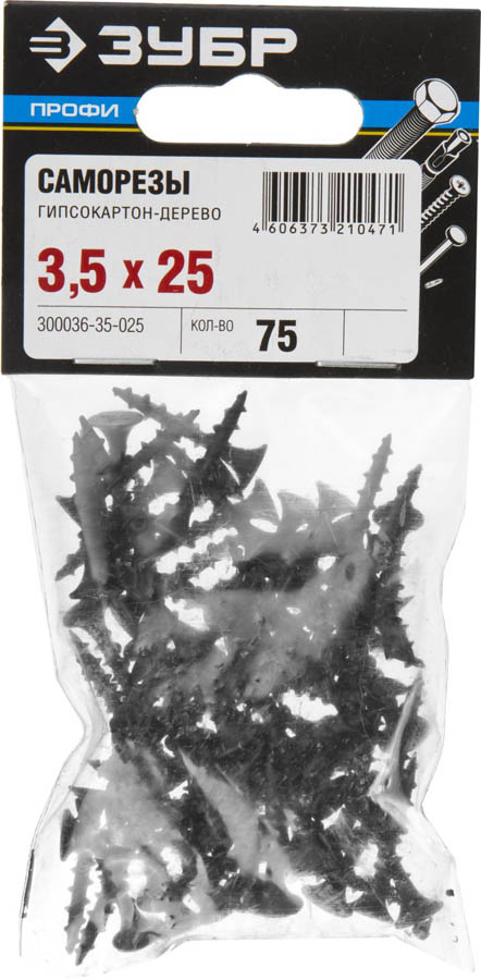 Саморезы гипсокартон-дерево ЗУБР 300036-35-025, применяются для крепления гипсокартона к деревянным конструкциям. Саморезы для гипсокартона изготовлены из высококачественной стали, прошедшей термическую обработку. В отличие от шурупов, саморезы не требуют предварительного сверления в скрепляемых материалах. Находят широкое применение при выполнении бытового ремонта, сборке и установке различных конструкций. Крупный шаг резьбы оптимален для крепления гипсокартона к деревянной обрешетке, без крошения волокнистой структуры дерева. Фосфатированное покрытие надежно защищает от коррозии