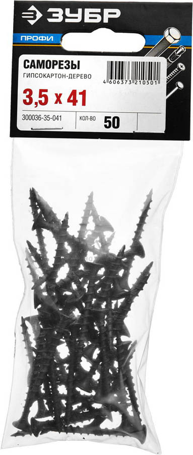 ЗУБР 41 х 3.5 мм, 50 шт., саморезы гипсокартон-дерево 300036-35-041 Профессионал