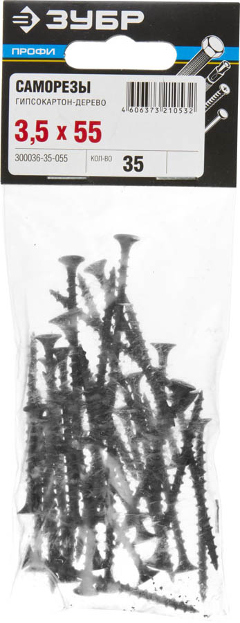 Саморезы СГД гипсокартон-дерево, 55 х 3.5 мм, 35 шт, фосфатированные, ЗУБР Профессионал