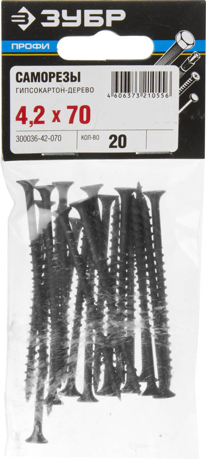 Саморезы СГД гипсокартон-дерево, 70 x 4.2 мм, 20 шт, фосфатированные, ЗУБР Профессионал