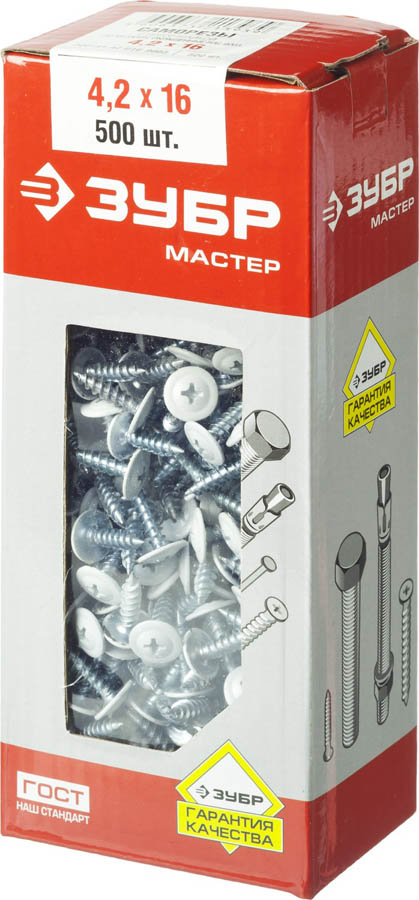 Саморезы ПШМ для листового металла, 16 х 4.2 мм, 500 шт, RAL-9003 белый, ЗУБР