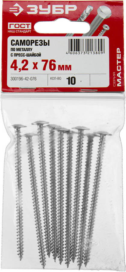 Саморезы ПШМ для листового металла, 76 х 4.2 мм, 10 шт, ЗУБР