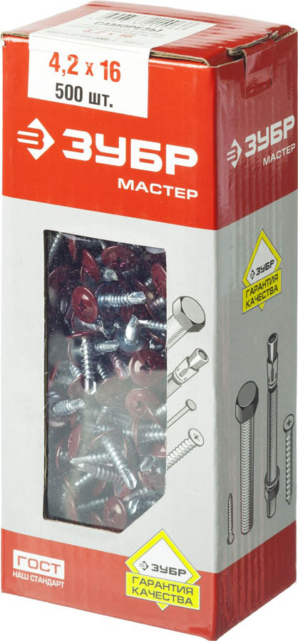 Саморезы ПШМ-С со сверлом для листового металла, 16 х 4.2 мм, 500 шт, RAL-3005 темно-красный, ЗУБР
