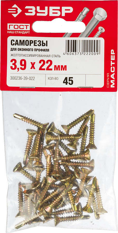 ЗУБР 22 х 3.9 мм, 45 шт., саморезы для оконного профиля 300236-39-022