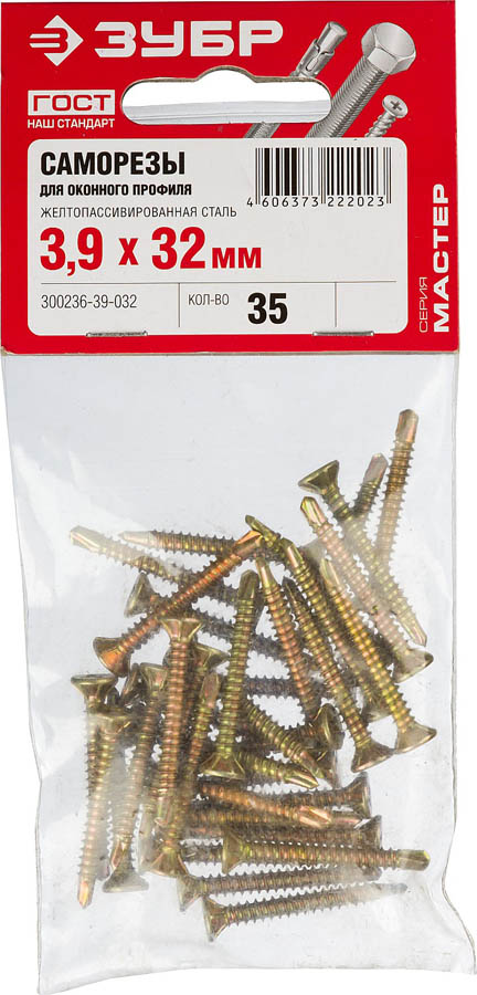 ЗУБР 32 х 3.9 мм, 35 шт., саморезы для оконного профиля 300236-39-032
