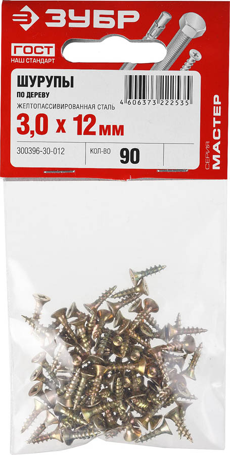 ЗУБР 12 х 3 мм, 90 шт., шуруп универсальный по дереву МАСТЕР 300396-30-012