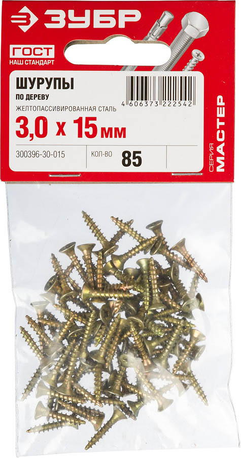 ЗУБР 15 х 3 мм, 85 шт., шуруп универсальный по дереву МАСТЕР 300396-30-015