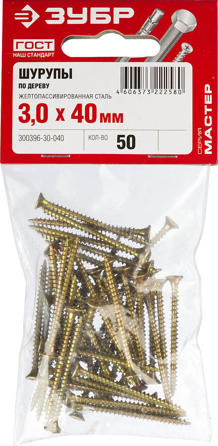 Саморезы СУ-Ж универсальные, 40 х 3.0 мм, 50 шт, желтый цинк, ЗУБР