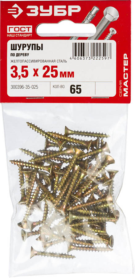 ЗУБР 25 х 3.5 мм, 65 шт., шуруп универсальный по дереву МАСТЕР 300396-35-025