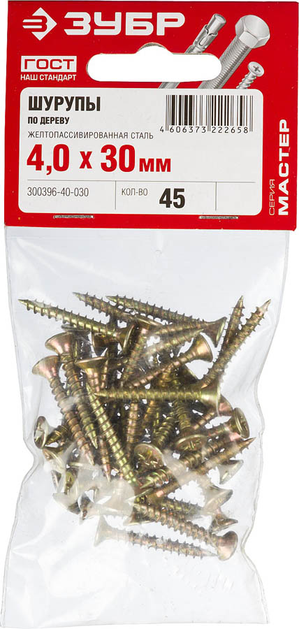 ЗУБР 30 х 4.0 мм, 45 шт., саморезы по дереву 300396-40-030
